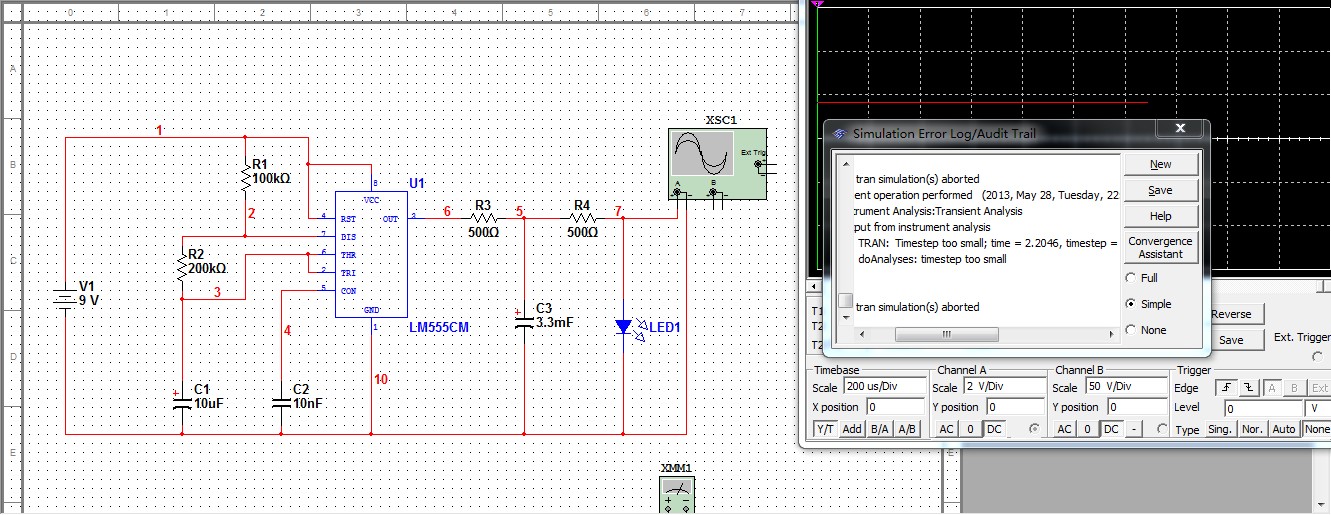 multisim模拟555组成的呼吸灯运行时总是出错