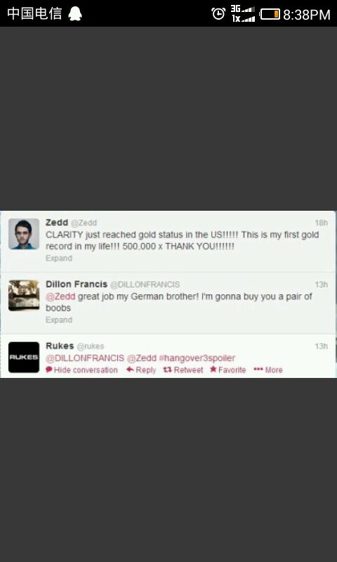 zedd庆祝Clarity下载破50W,然后他的朋友就婊示要买两个乳房给他