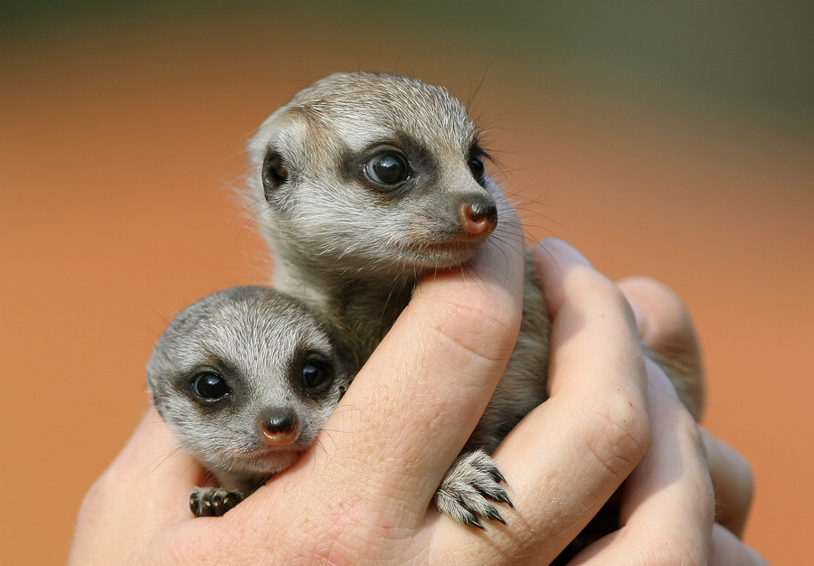 这位是生活在澳大利亚的猫鼬宝宝,又叫狐獴。因为生活在地球上最炎热的地区之一,所以天生自备太阳镜。这种看起来非常可爱,甚至成为动画主角的小动物,却拥有着可以杀死眼镜蛇的战斗力。除此之外猫鼬有着天生好嗓音,猫鼬群族会在特定时刻举行歌唱仪式。摄影师:Greg Wood。