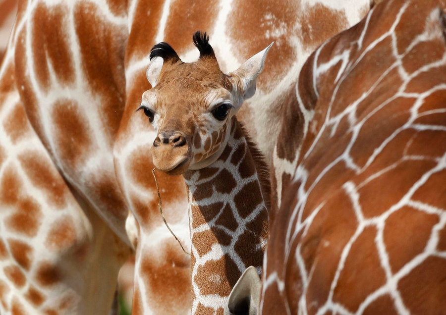 这位是生活在德国纽伦堡动物园的长颈鹿宝宝。刚刚出生10天的长颈鹿宝宝第一次跟着爸爸妈妈走出房间,来到室外。举止优雅的长颈鹿很少发生冲突,即使成年雄性长颈鹿争风吃醋时的决斗,看起来也很像是探戈舞步呢。摄影师:Timm Schamberger。