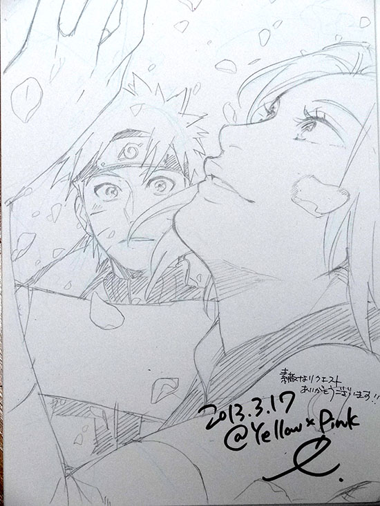 樱下面的字:第一步的小樱当被问是不是鸣人的恋人时想都不想就否定了,真怀念那时候用全力一拳表示否定的樱阿~ 但是大家也注意到了吧? 对 大家!!! 这次樱并没有否定喔!!!!!!!!!! 因为这个作者是鸣樱党~ 所以她很注意鸣樱的互动~~