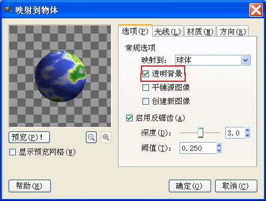 映射到:球体 选中:透明背景