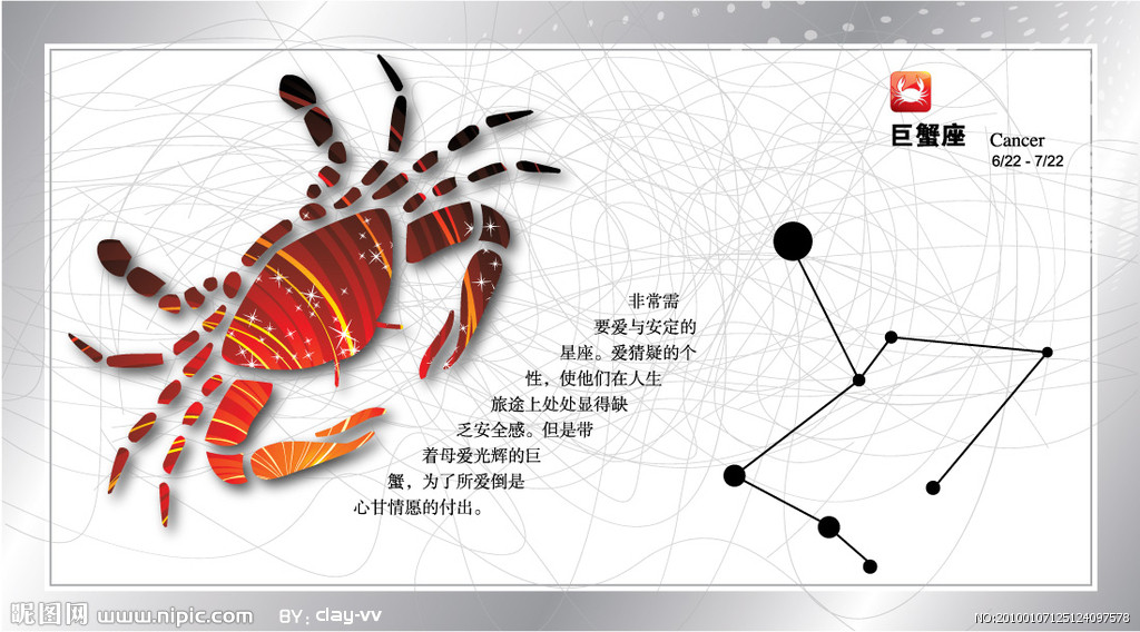 宙斯和人间的少女阿克梅妮生了儿子海格拉斯,而海格拉斯长大后娶了德贝的公主,却因宙斯正后赫拉的诅咒而亲手刃妻,悲伤得也想自尽.宙斯为了让他赎罪,便任命他为耶里斯特斯王,必须经历十二大冒险,其中有一项是制服怪物西多拉,住在沼泽内的巨蟹看到西多拉陷入苦战,便跳出咬海格拉斯的脚,结果巨蟹被踩碎,西多拉也被制服,赫拉因感伤巨蟹的牺牲,便设它为巨蟹座.