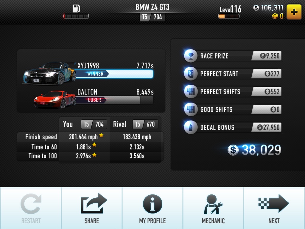 跟我的结果基本一样,为了在安卓上拿到boss车,我把所有非金币车都升满了,呵呵~