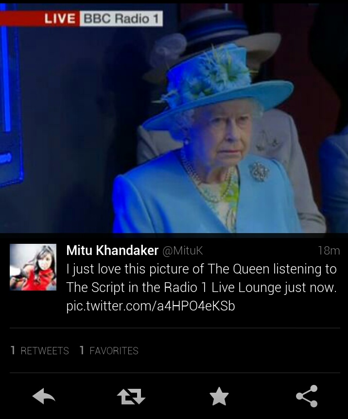 "We just thought it was an appropriate song. Plus we got to sing 'I will be king and you will be queen,' to the Queen. Amazing."