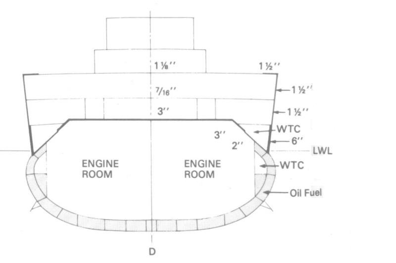 这就是本文的主角:TDS——Torpedo DefenseSystem——鱼雷防护系统。鱼雷防护系统通常布置于从装甲带到舰底、从最前弹药库到最后弹药库之间的区域。在舰首与舰尾,战舰的宽度使之无法布置这一结构。因此,鱼雷防护系统并不能完全保护战舰的舰首、舵机以及传动轴。