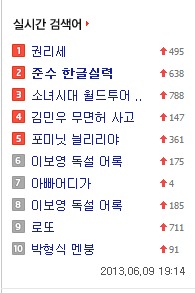 【10俊秀】[0609]Nate实时热搜第二位“俊秀 韩文实力”