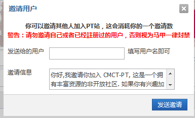CMCT外站发PT站邀请2个~~~研究的半天终于可以发了!