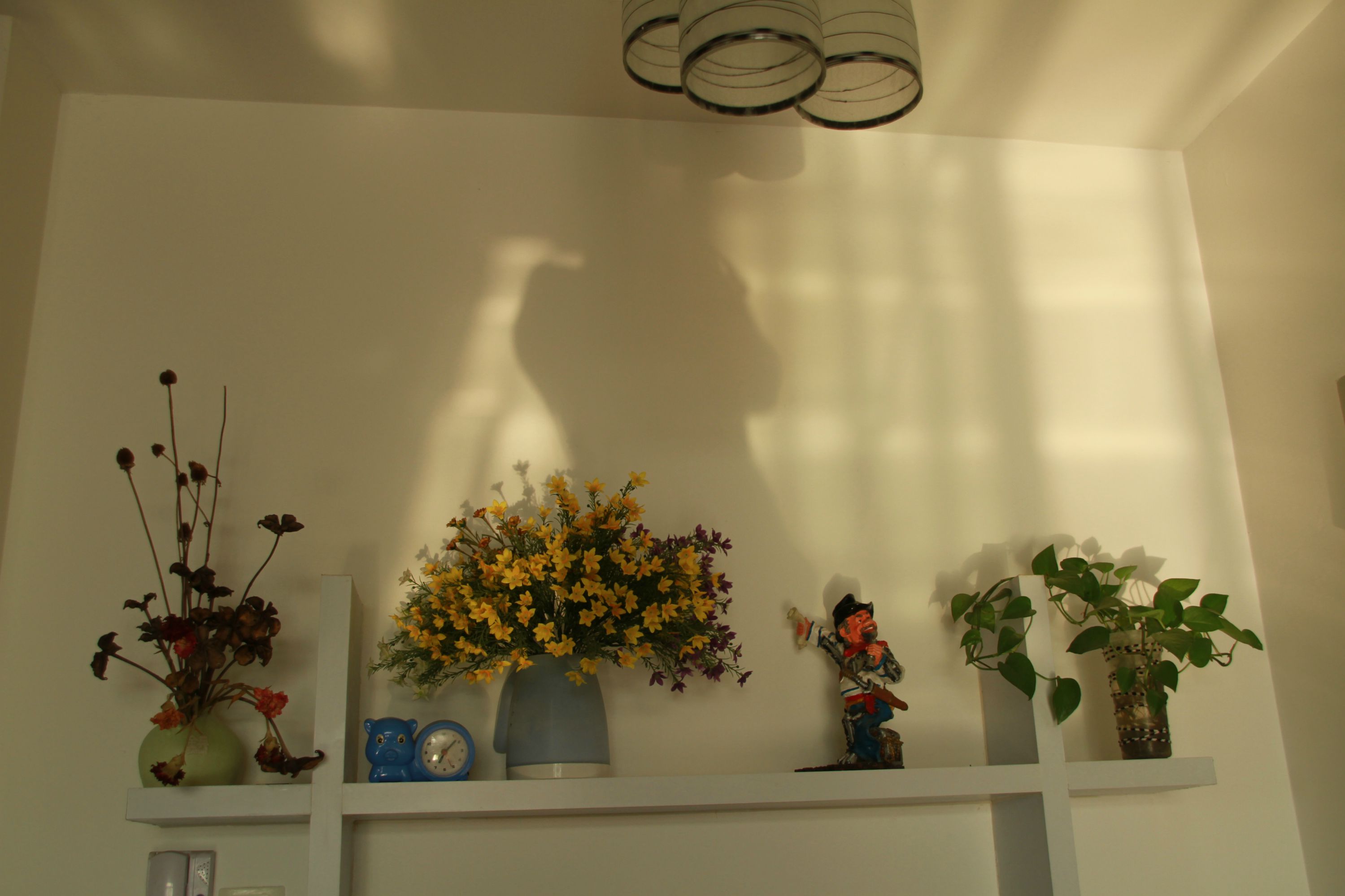 花老板送的万年青喜阴,此地正好放它