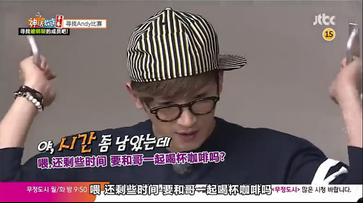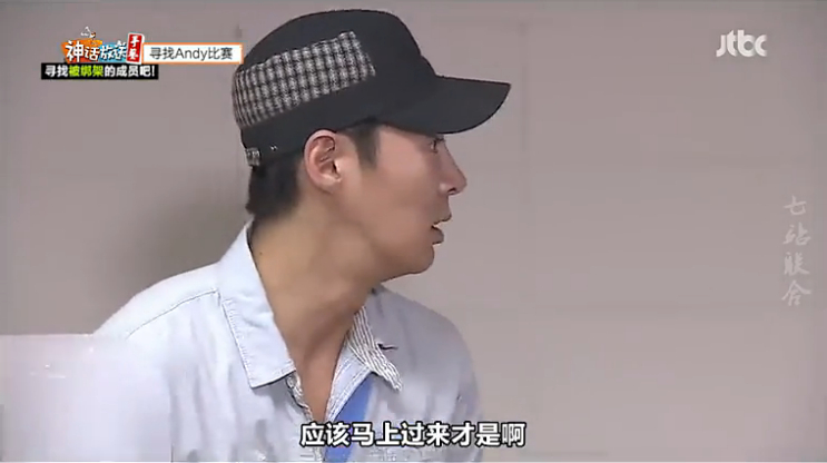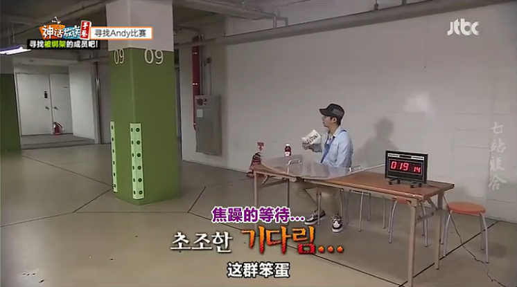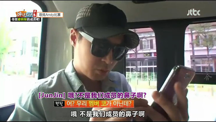 jin成员中第一个到达地下停车场也就是集合场所,然后看见正在减少的计时器就说“在这时间里成员都要来才行吗”PD说对,Jin就焦急起来说“在这一名成员都没看到,看了照片还不知道是Andy吗,应该马上过来才是啊,这群笨蛋”(ps:Jin你是有多急啊!只是录节目不是真的啊哦!看得出来他真得很担心DD)