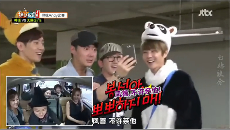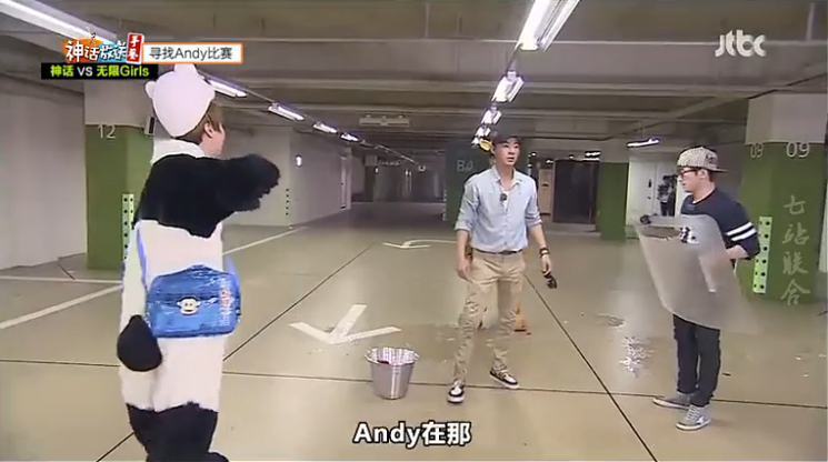 时间内成员都到齐了,无限女孩开着车过来下车就用水枪发射,里面还在仍水,Jin一个一个叫了名字然后说“放了Andy,放了Andy”
