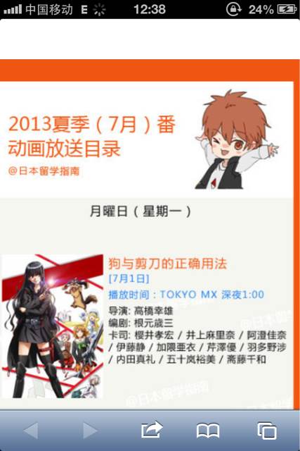 2013年7月新番动画一览(6月13日更新版):随着近期多部作品确定播出日期,日站Uzurainfo也放出了7月新番动画一览表的最新版。截至目前7月共有漫画改编作品20部,小说改编作品7部,游戏改编作品2部,原创动画6部,合计35部新番。部分新番最新杂志版权绘