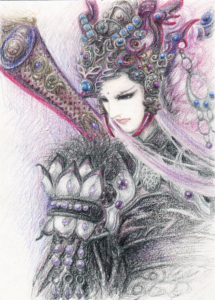 画完头的时候我才发现自己一开始就犯了两个错误,一是选错了纸张(纸纹太粗纸张太小了),二是选错了对象……大熊你再选一个版本的素素吧……我有时间的话我就画……
