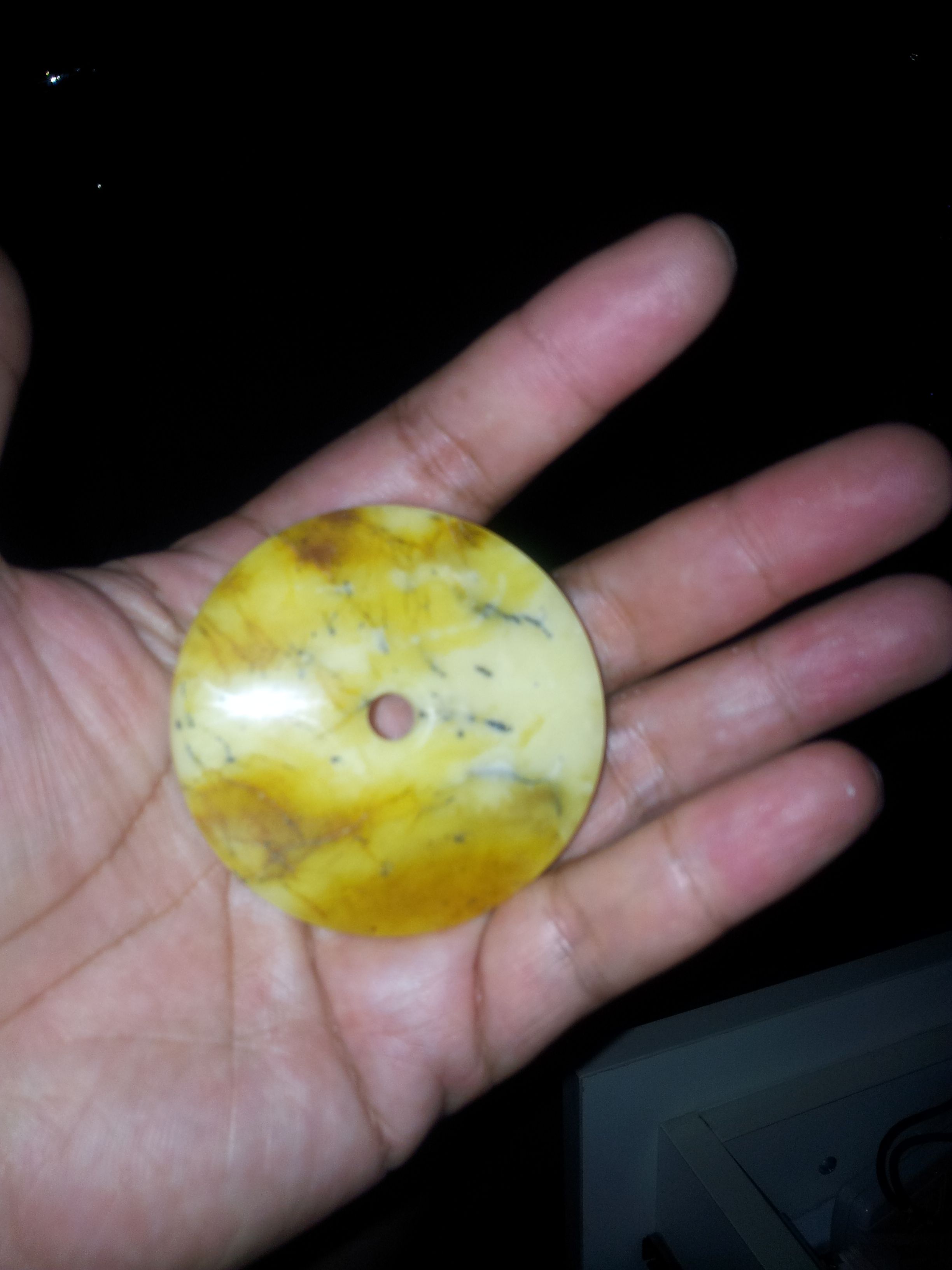 磨了个打平安扣55*8 可惜有点杂 是白蜜蜡