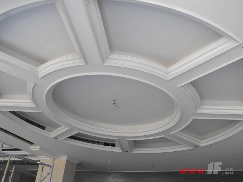 这种顶有谁做过吗?上面的弧形线条是石膏线还是PU线条?如何施工?