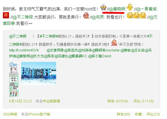 【6.21不二神探】黄教主也转发不二微博了