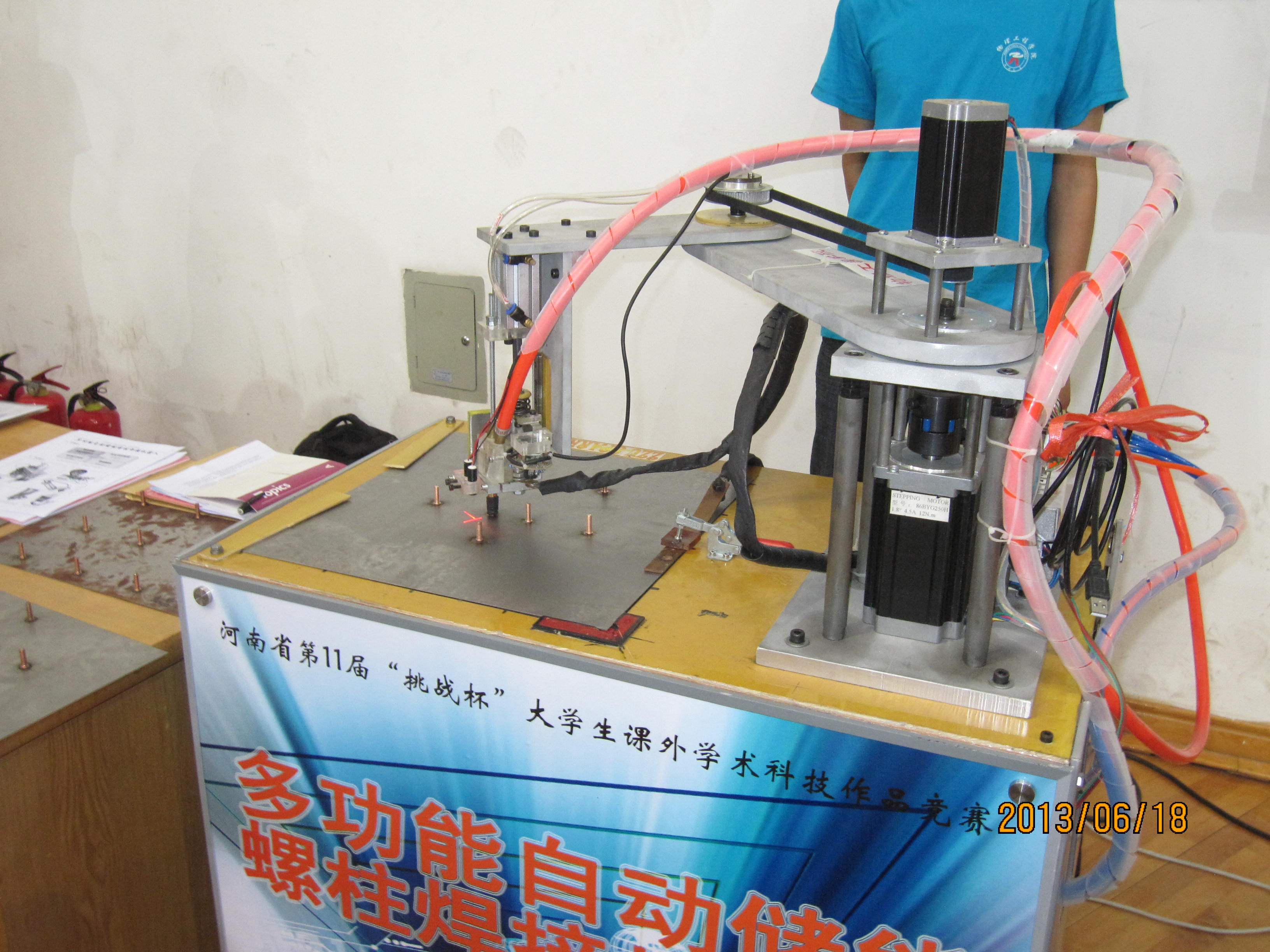 回复 苏维埃巨蟾 :先在钢板上打孔,螺柱定位,再焊接才是正路。不然这玩意靠皮带传动的我十分怀疑他能不能定位?或者说XY位置的精度能保证么。。