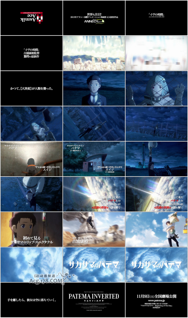 ↑点击图片播放视频此前宣布将在2013年秋季上映的动画「翻转的Patema」(或译:倒转的帕提玛),今日公开了动画宣传特报,同时动画确定了将在2013年11月9日在日本上映。