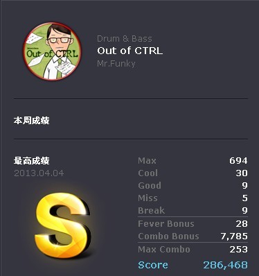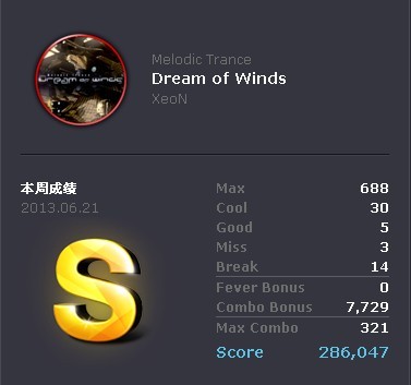 今天比较圆满。。。。刚过大宙斯的时候我打下一曲手都在抖= =激动啊。。