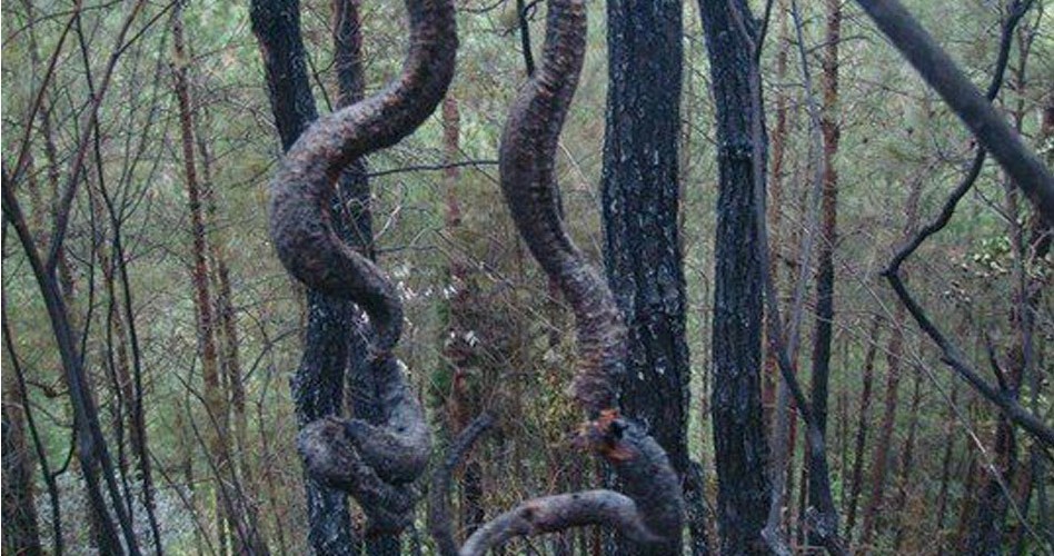 3月25日凌晨4时,四川巴中境内雷电交加,春雨如注,寺岭乡麻子梁山发生森林火灾。经现场调查,此次起火原因是雷电击中1条体长近4米的蟒蛇导电引起的森林火灾,过火面积约4.8亩,森林受害面积约3.6亩。图为被烧焦的蟒尸。