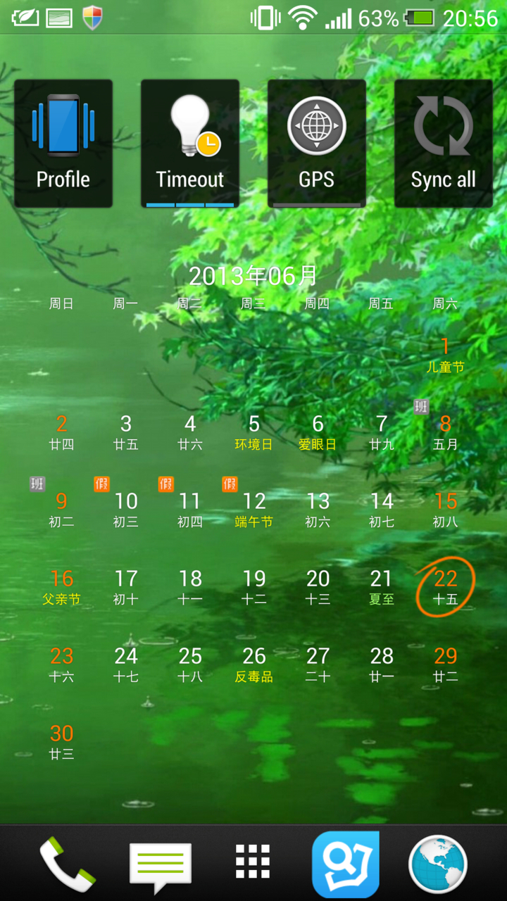 解锁后当然是主屏了~话说one自带天气程序是用的accuweather服务器的数据 相当的准~