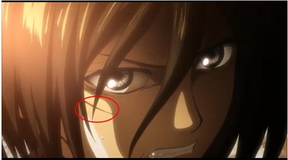 一开始就有说明 被暴走后的艾伦打飞时脸上被什么划了一下