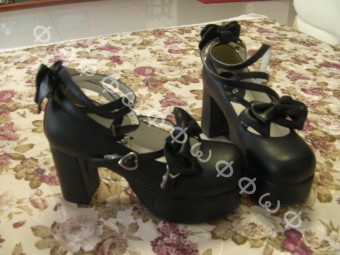 流行LOLITA 鞋 高跟蝴蝶结公主鞋 黑色 跟高:约8cm 防水台:4CM 鞋码:36码