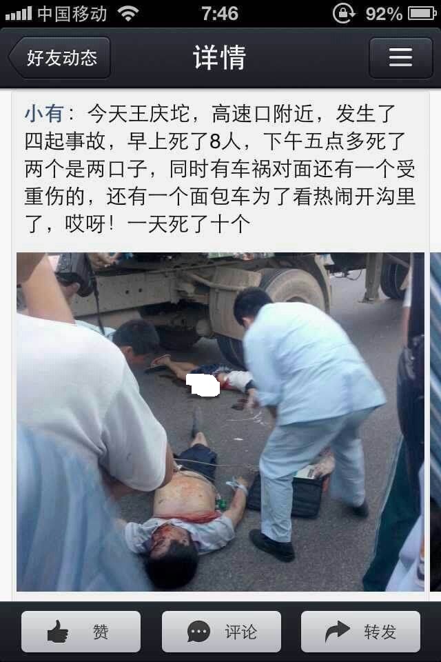 我们老家王庆坨,从津保高速口到政府门口短短1公里的距离,一天内连出四起车祸,死亡10人,这段路从94、95年的时候就不干净,估计这是又开始收人了,不过发生在一天,实在有点太恐怖了!!!!