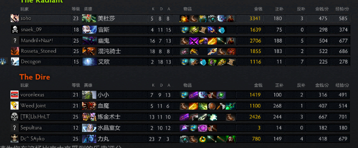 刚打的一局,前期小崩,不过我们后期多,起来了lol.