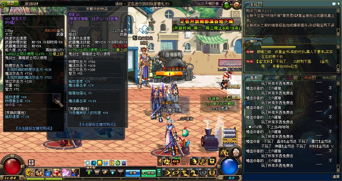 看 他80W卖+13智圣 然后我去买 说售主钱满了 然后他关闭商店说 郁闷 还是把钱降低点吧 然后70W了 我连忙买了下来 高兴坏我了 NND一看