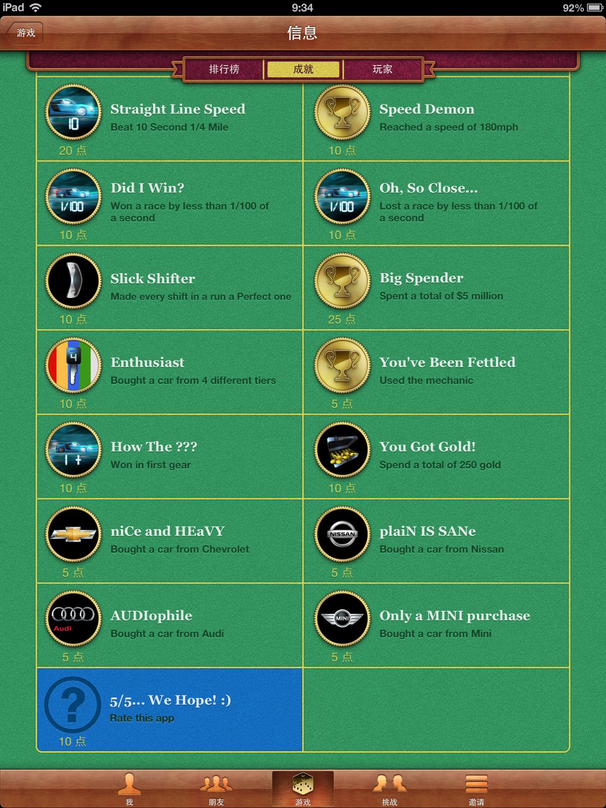 回复 斑吉拉 :我也是这样的情况。估计是要注册facebook之类的吧,估计要翻墙。我早就完成了所有成就,但这一个就是没有。只好等高人来解答了。