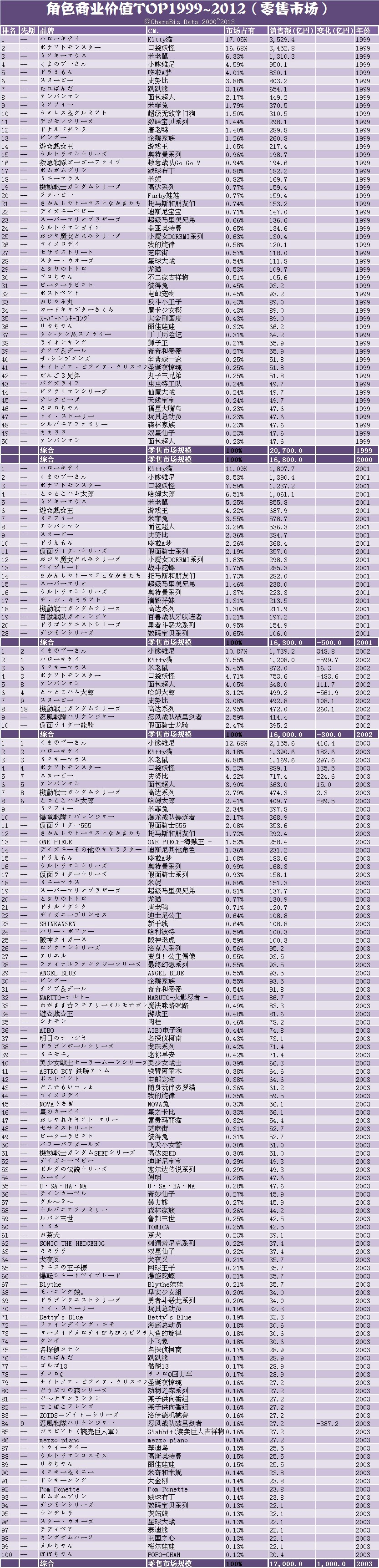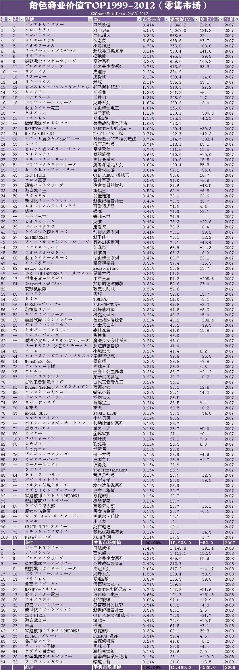 年间合计売上/原作以外の売上/构成比/コミック书籍売上/小说売上/DVD売上/BD売上/タイトル/原作メディア