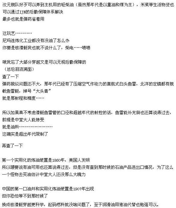 不过...几乎很少有人提到,作者将一艘常规黑鱼穿越回去...后勤和补给怎么解决