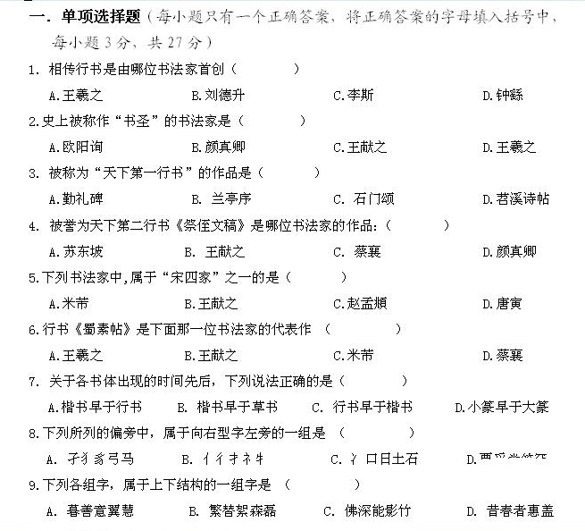 我出的《硬笔行书书法试题》
