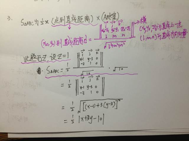 3. 如图,打问号的地方,一个是三角形的面积是怎么得的?还有一个是下面的方程组是怎么解的?