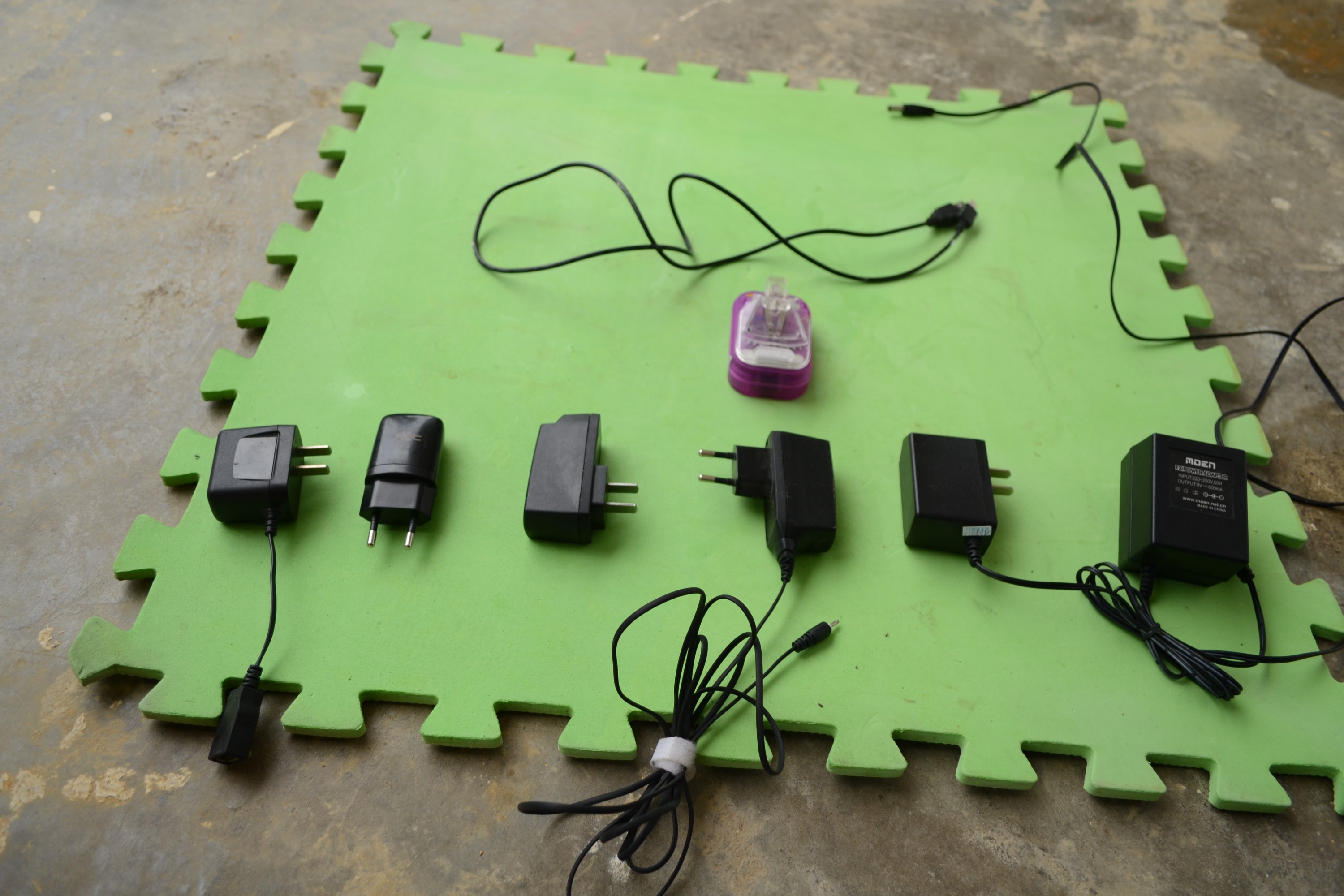 各种充电器 最左边的是摩托罗拉的 第二是火腿肠的 第三个是诺基亚 第四也是诺基亚 第五个第六个不知道 有需要的可以过来试 满意再带走 一个五块 万能充两块
