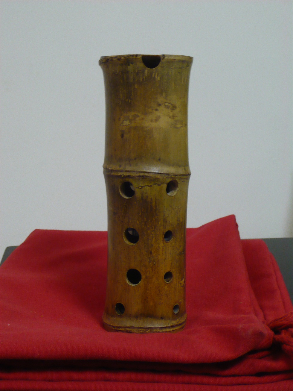 说说 我的竹埙 八孔 为什么是低音5--高音2的呢? 大都知道西安八孔指法是低音5--高音 1 后面的指法是 7和高音1。我就是把7的指法孔做大 音高做成高音1,,,第八孔的高音1掏大成高音2, 7为交叉指法,这样就可以八孔有 高音2的了。重要的首先要把高音的振动条件做好,要不然高音2的指孔也是摆饰。我做的竹埙 高音2 正常吹奏 其实也是解决了高音的振动问题