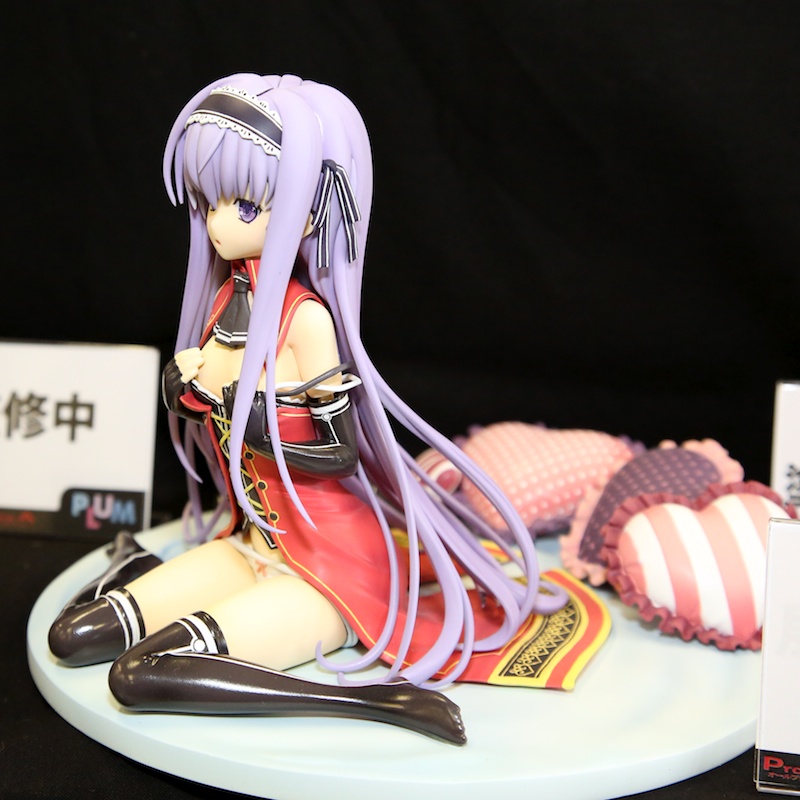 PLUM(プラム)より、2013年6月に発売予定の恋骑士 Purely☆Kiss 藤守由宇(AA)の2013年4月9日に行われた、宫沢展示会2013春での展示サンプルの様子です。服、パンツともに少し脱ぎかけな姿でペタリと座るポーズです。