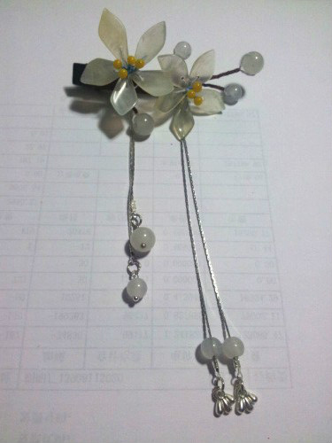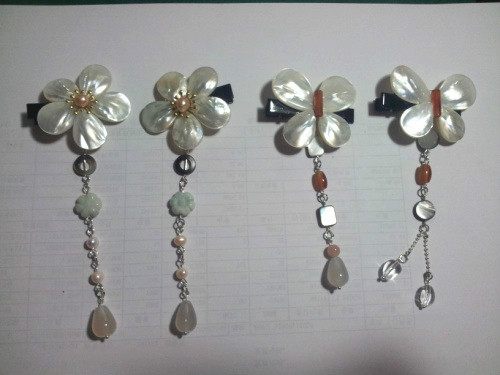 回复 lovesoul618 :是挺方便的,尤其这次的白蝶贝的夹子,因为是平的所以扎个马尾当边夹用很好,和头发是贴的。其余的玉石花瓣的夹子就比较适合夹在发髻边上,