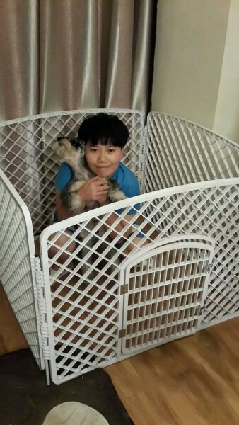 这种高度,我家那两货轻松飞出,完美落地,根本没起到围栏作用,直接就是个障碍物对于他们来说,所以果断放弃