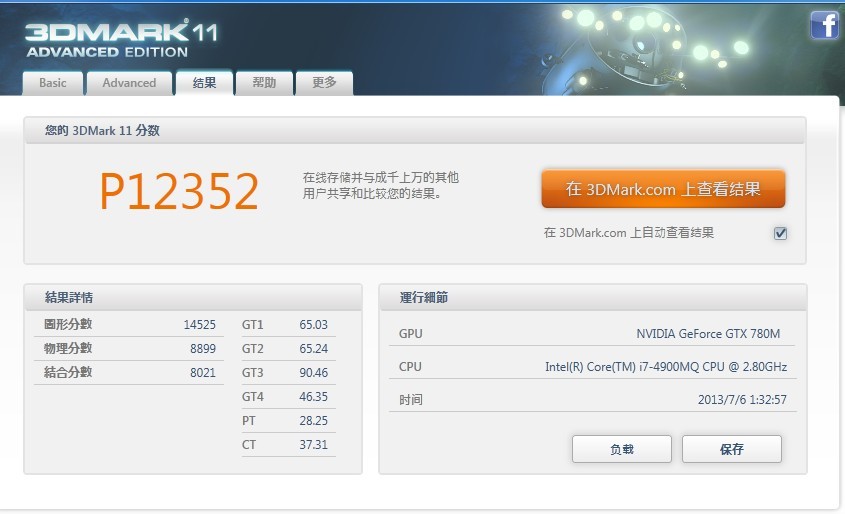 P375SM的3DMARK测试分数出炉。。话说那感人的温度我怎么办