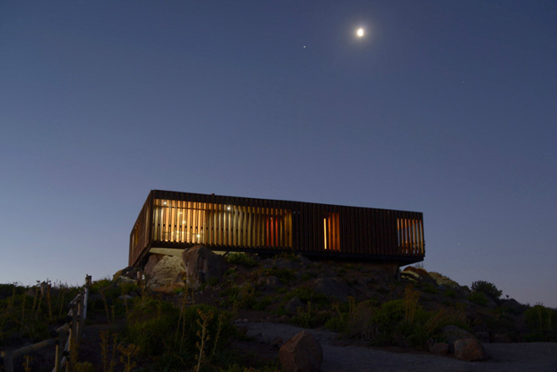 建筑师罗德里戈·圣玛丽亚(圣玛丽亚罗德里戈)设计了一个私人的房子,位于边缘的岩石山脊海拔在东姑的小村庄,不远处的瓦尔帕莱索,智利在海拔70米。居住面积180平方米。米的不同壮丽的全景360度每间客房。木结构致密混凝土基础上,由三间卧室,休息区,结合饭厅和厨房,以及一个露台放松。