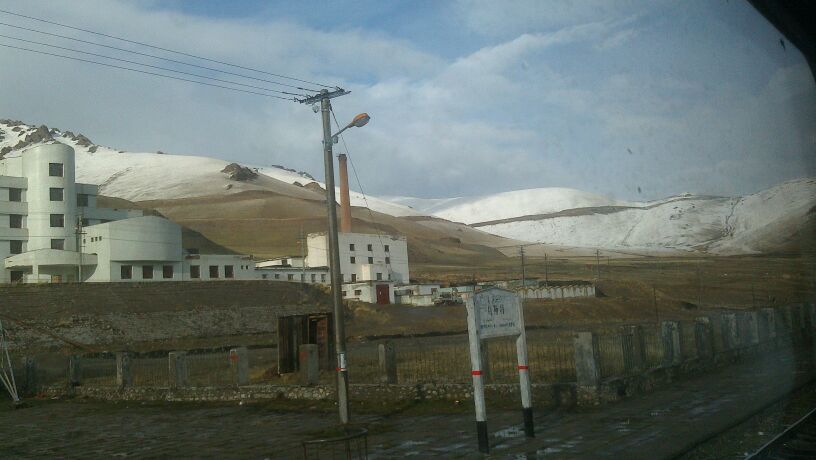 路过巴楚火车站,下来凉快一下。大热天的,突然下雪了。前几天拍的。