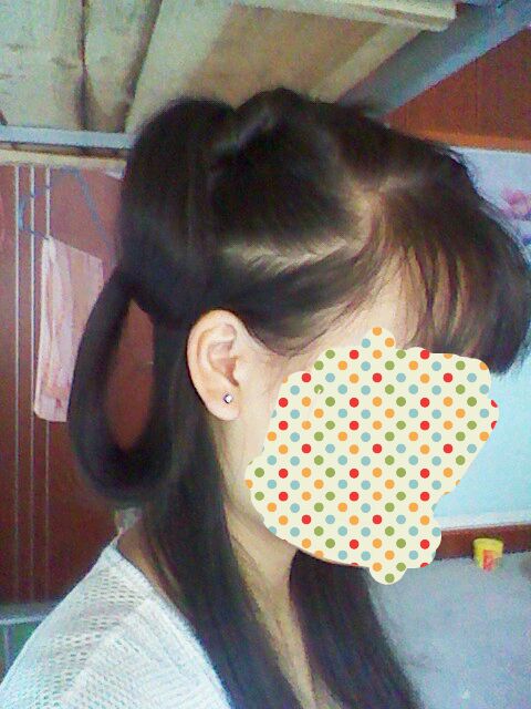 首先 扎两个马尾 如图 一多一少