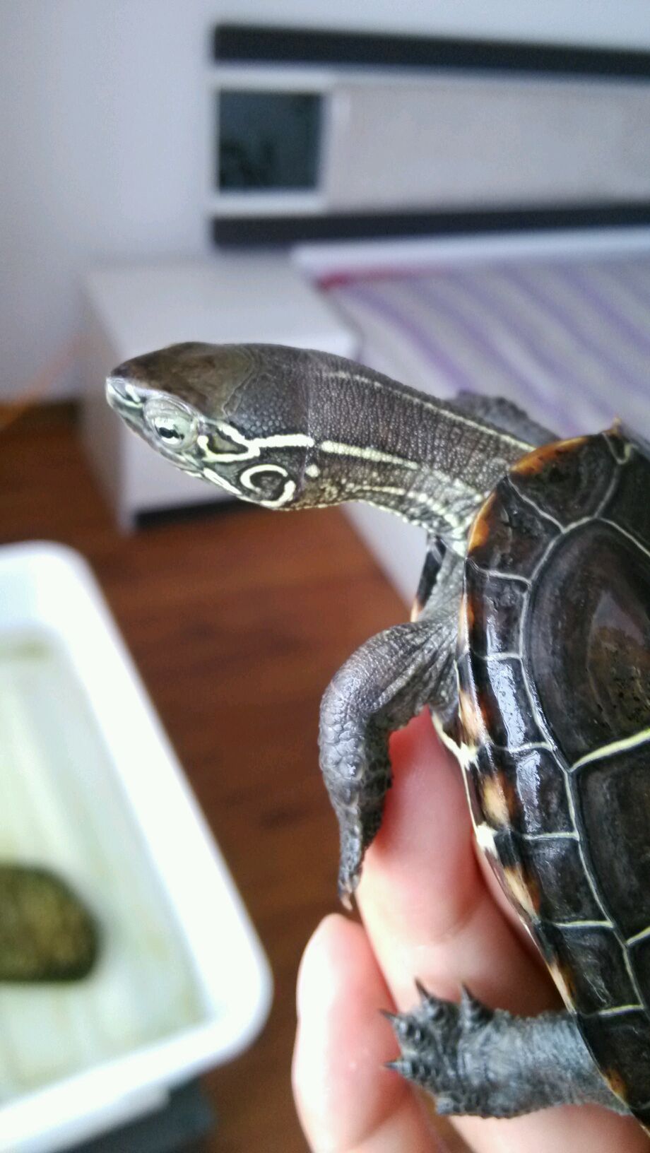 是不怕,最早养的时候超级乖,看到我凑过去就缩头,现在各种调皮,伸手摸龟头都不缩的