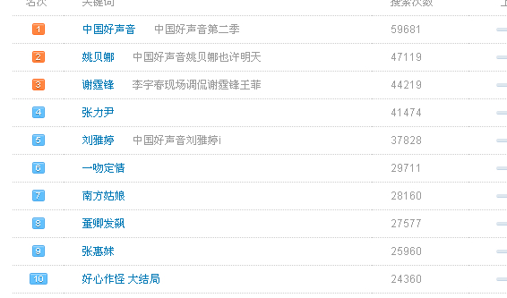 中国好声音第一期播出后热搜指数