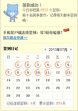 回复 亮晶晶624 :嘛。。。连续签了270天断了还是有点。。。