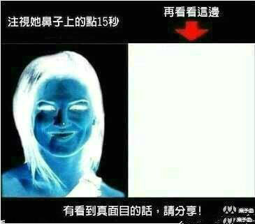 盯着鼻子上的白点十五秒,然后视线突然转移到空白处,你会看到她的原貌。(绝不是吓唬人的那种)