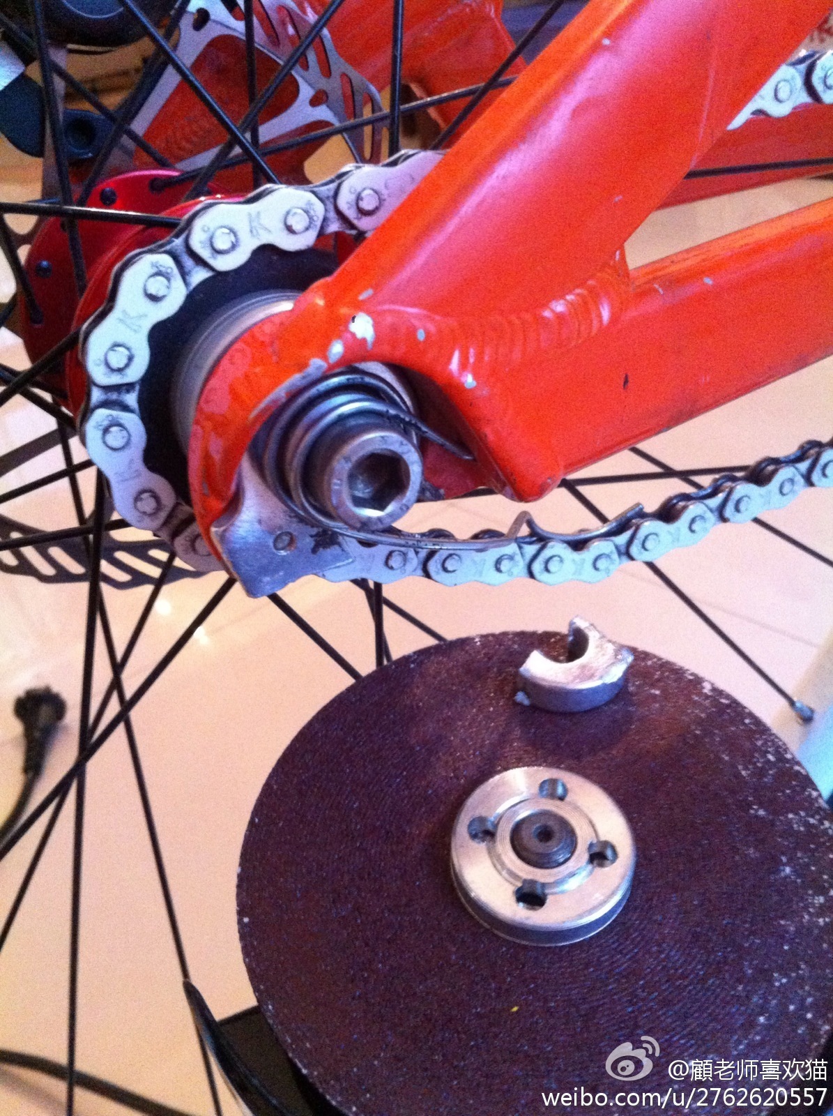 其实这样会降低刹车座位置的强度的,毕竟那个地方是焊接过的,有过热处理,要去掉我认为最好使用砂轮机一点一点磨,还要一直浇水