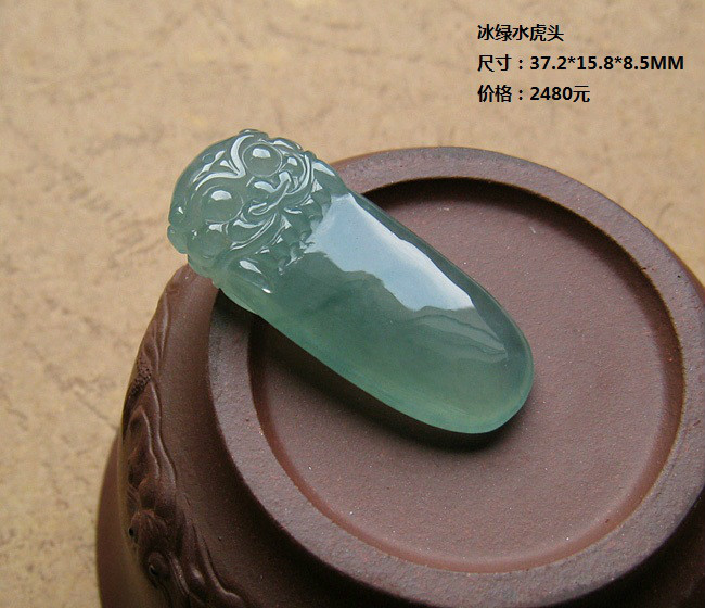 描述:种老水好,通透,绿水底,虎头雕工好,双面工,立体饱满,没有纹裂。